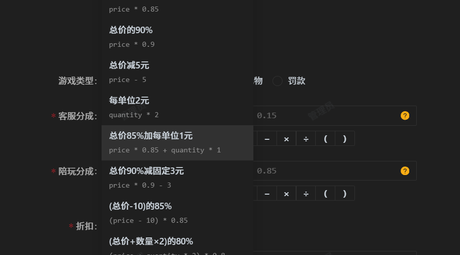 -分成公式现在完全重构, 为用户提供便捷的可视化页面